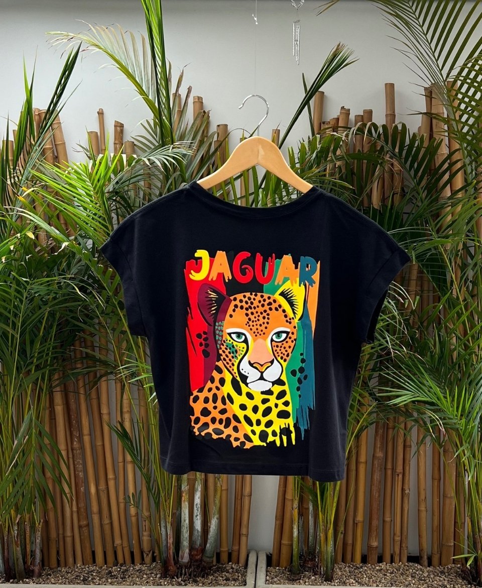 Esta camiseta negra de la colección Jaguar Ancestral nace como un homenaje a la energía que habita la selva y a quienes caminan el mundo con presencia y carácter. Su diseño psicodélico representa el viaje interior, la expansión de la conciencia y el vínculo profundo con la naturaleza.
